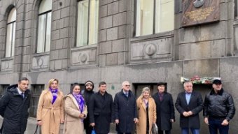 Zəfər Günündə ulu öndər Heydər Əliyevin Sankt-Peterburqdakı barelyefi ziyarət edilib