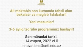 Təhsil İnstitutu son kursda oxuyan bakalavr, magistr və yeni məzun olanlar üçün təcrübə təşkil edəcək