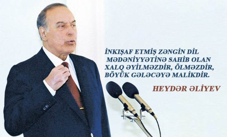 Onu da qeyd edək ki, Azərbaycan dili xalqımızın milli varlığını müəyyən edən, azərbaycançılıq məfkurəsi əsasında duran mühüm amillərdən biridir. Ulu Öndər Heydər Əliyev Azərbaycan dilinə yanlız ünsiyyət vasitəsi kimi deyil, qədim və zəngin tarixi mədəniyyətin, müasir dünyada müəyyən ictimai mədəni mövqeyi olan bir xalqın milli sərvəti kimi yanaşırdı.
