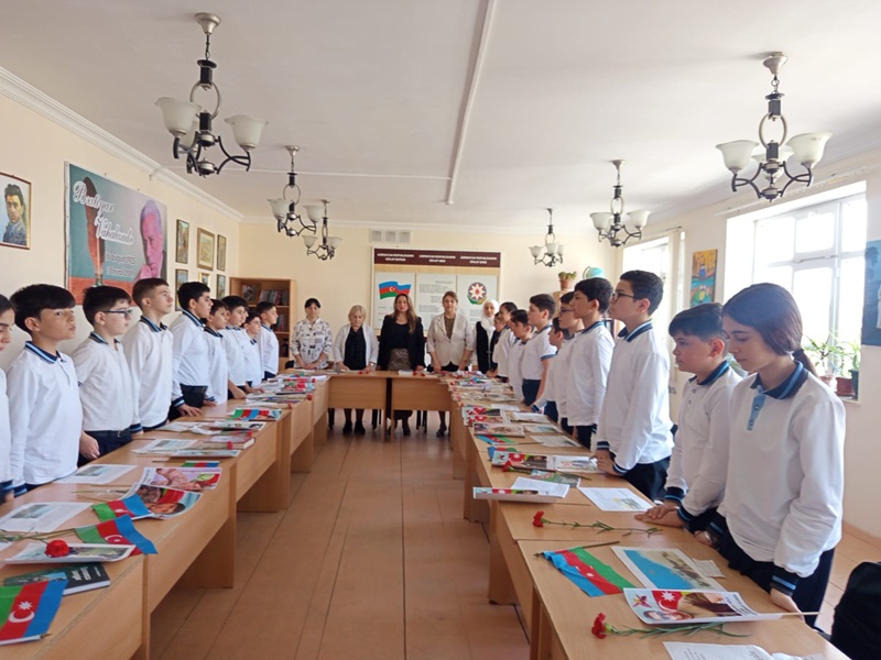 Direktor vəzifəsini müvəqqəti icra edən Sona Abbasova tədbir iştirakçılarını salamlayaraq dedi: “Vətənpərvərlik hər birimizin ürəyində olan müqəddəs hissdir. Vətəni sevmək yalnız sözlə deyil, həm də əməl ilə göstərilməlidir. Dərslərinizi yaxşı oxumağınız, elmli və bilikli olmağınız da Vətənə xidmətdir. Siz Azərbaycanın gələcəyini daha da işıqlı etməlisiniz.Torpaq uğrunda canlarından keçən şəhidlərimizin, qazilərimizin vətənpərvərlik yolunu davam etdirərək Azərbaycanın adını yüksəklərə qaldırmalısınız”. Məktəbin təlim-tədris işləri üzrə direktor müavini Gülnarə Vəliyeva 27 sentyabrın Azərbaycan tarixində qəhrəmanlıq və Vətən sevgisinin rəmzi kimi yadda qaldığından, 2020-ci ildə başlayan Vətən müharibəsində xalqımızın torpaqlarımızın azadlığı uğrunda bir yumruq kimi birləşməsindən bəhs etdi.