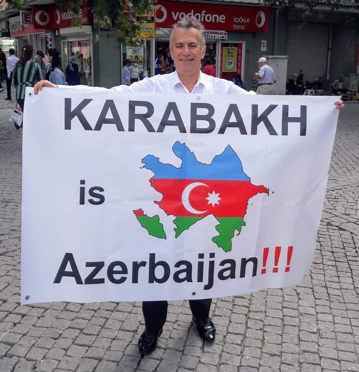 Cephede, şehit vere vere; ayağını, bacağını, gözünü kaybeden gazi vere vere kazanan Azerbaycan Askeri’ni, PKK-PYD ve Hizbullahla ilişkilendirip terör örgütü olarak göstererek.