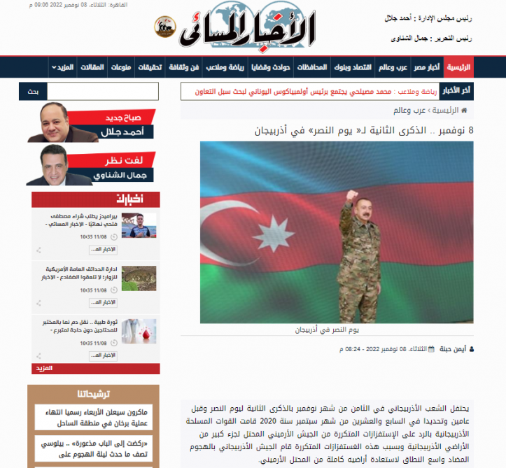 Ərəb ölkələrinin qəzet və portallarında 8 Noyabr – Azərbaycanın Zəfər Günü haqqında məqalələr dərc edilib.