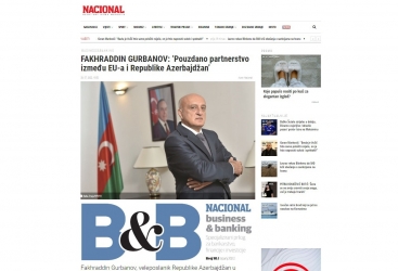 Xorvatiyanın nüfuzlu “Nacional” jurnalında Azərbaycanın bu ölkədəki səfiri Fəxrəddin Qurbanovun Azərbaycan ilə Avropa İttifaqı (Aİ) arasında enerji sahəsindəki strateji tərəfdaşlığa dair Anlaşma Memorandumunun imzalanması barədə geniş məqaləsi dərc edilib.
