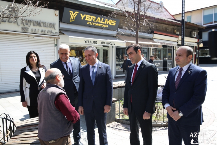 Tarixi "Daş Mağazalar Caddesi”ni gəzən Azərbaycan nümayəndə heyətinin üzvləri ticarətçilərlə söhbətlərində ölkəmizin hər zaman qardaş Türkiyəyə dəstəyini vurğulayıb, Azərbaycanın və Türkiyənin tarixi qardaşlıq əlaqələrinə malik olduğunu bildiriblər.