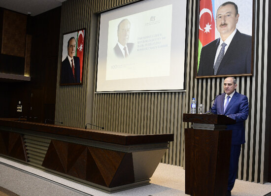 Tədbirdə giriş nitqi ilə çıxış edən Dövlət Statistika Komitəsinin sədri Tahir Budaqov hər zaman azərbaycanlı olması ilə fəxr edən, müstəqil Azərbaycan dövlətinin qurucusu və memarı, bütün varlığı ilə vətəninə, xalqına bağlı olan dünya şöhrətli siyasətçi və böyük dövlət xadimi, Ümummilli Lider Heydər Əliyevin respublikamıza rəhbərliyinin bütün dövrlərində Vətən və xalq qarşısında misilsiz xidmətləri, xilaskarlıq missiyası, zəngin dövlətçilik irsi barədə məlumat verib. O bildirib ki, Ümummilli Lider Heydər Əliyev təkcə bu dövrdə deyil, bütün həyatı boyu Azərbaycanın və onun xalqının rifahını düşünərək, bu ali amal uğrunda yorulmaz fəaliyyət göstərib, ömrünü bu yolda fəda etdiyi üçün qəlblərdə daimi sevgi, yaddaşlarda əbədiyaşarlıq qazanıb.İntibah və milli şüurun oyanışı Heydər Əliyevin hakimiyyətə gəlişi ilə başlamış, müstəqilliyimiz məhz onun sayəsində əbədi və dönməz xarakter almışdır. Ölkəmiz dünyada layiq olduğu mərtəbəyə Ulu Öndərin uzaqgörənliyi, müdrikliyi, qətiyyəti, dəmir iradəsi, zəngin dövlətçilik təcrübəsi sayəsində yüksələ bilmişdir. Ümummilli Lider Heydər Əliyevin müəyyən etdiyi hərtərəfli inkişaf strategiyasını, onun uzaqgörən və müdrik siyasətini keyfiyyətcə yeni müstəvidə uğurla davam etdirən Prezident İlham Əliyevin rəhbərliyi, həmçinin gərgin əməyi və yorulmaz fəaliyyəti ilə respublikamızda aparılan islahatlar və əldə olunmuş böyük nailiyyətlərdən bəhs edən Tahir Budaqov ölkəmizin sürətlə və hərtərəfli inkişaf etməsini, dövlətimizin daha da qüdrətlənməsini xüsusi vurğulayıb. Qeyd edib ki, cənab Prezident İlham Əliyevin rəhbərliyi ilə müzəffər ordumuz 30 ilə yaxın işğal altında olan torpaqlarımızı 44 günlük Vətən müharibəsində azad edib, ərazi bütövlüyümüz bərpa olunub.