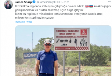 Bizim bu regionun minalardan təmizlənməsinə verdiyimiz dəstək artıq bir milyon funt-sterlinqdən çoxdur”.