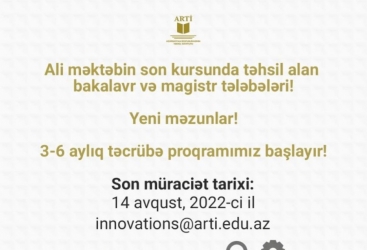 Azərbaycan Respublikasının Təhsil İnstitutu (ARTİ) ali məktəbin son kursunda təhsil alan bakalavr, magistr tələbələri və yeni məzun olanlar üçün təcrübə təşkil edəcək.