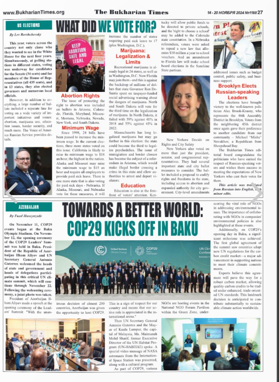 Diaspor Fəaliyyətinə Jurnalistlərin Dəstəyi İctimai Birliyi (DFJD) tərəfindən könüllü olaraq COP29-ın xarici mediada təbliğatı davam etdirilir. Növbəti olaraq DFJD-nın sədri Fuad Hüseynzadənin ABŞ-ın “Bukharian times” qəzetində “Daha yaxşı dünyaya doğru: COP29 Bakıda başlayır” başlıqlı məqaləsi dərc olunub.