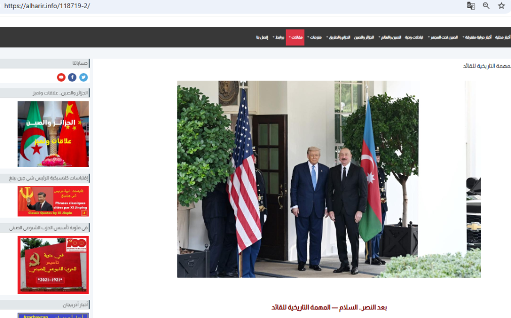 Vaşinqtonda Azərbaycan Prezidenti İlham Əliyev, Ermənistanın Baş naziri Nikol Paşinyan və ABŞ Prezidenti Donald Trampın iştirakı ilə imzalanan üçtərəfli Birgə Bəyannamə ərəb ölkələrinin media orqanlarında geniş şəkildə işıqlandırılıb.