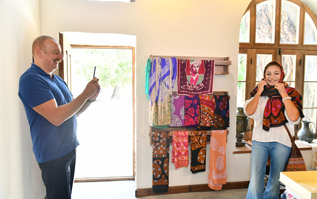 “Xeber 7"nin məlumatına görə, dövlət başçısı və birinci xanım buradakı emalatxanada kəlağayı ustası ilə söhbət ediblər.