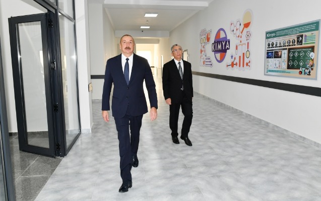Prezident İlham Əliyev məktəbin yeni binasının çağırışa qədər hərbi hazırlıq otağında, ekosinifdə, biologiya kabinetində, informatika və rəsm otaqlarında, yeməkxanada, əmək otağında və fizika kabinetində yaradılan şəraitlə tanış olub.